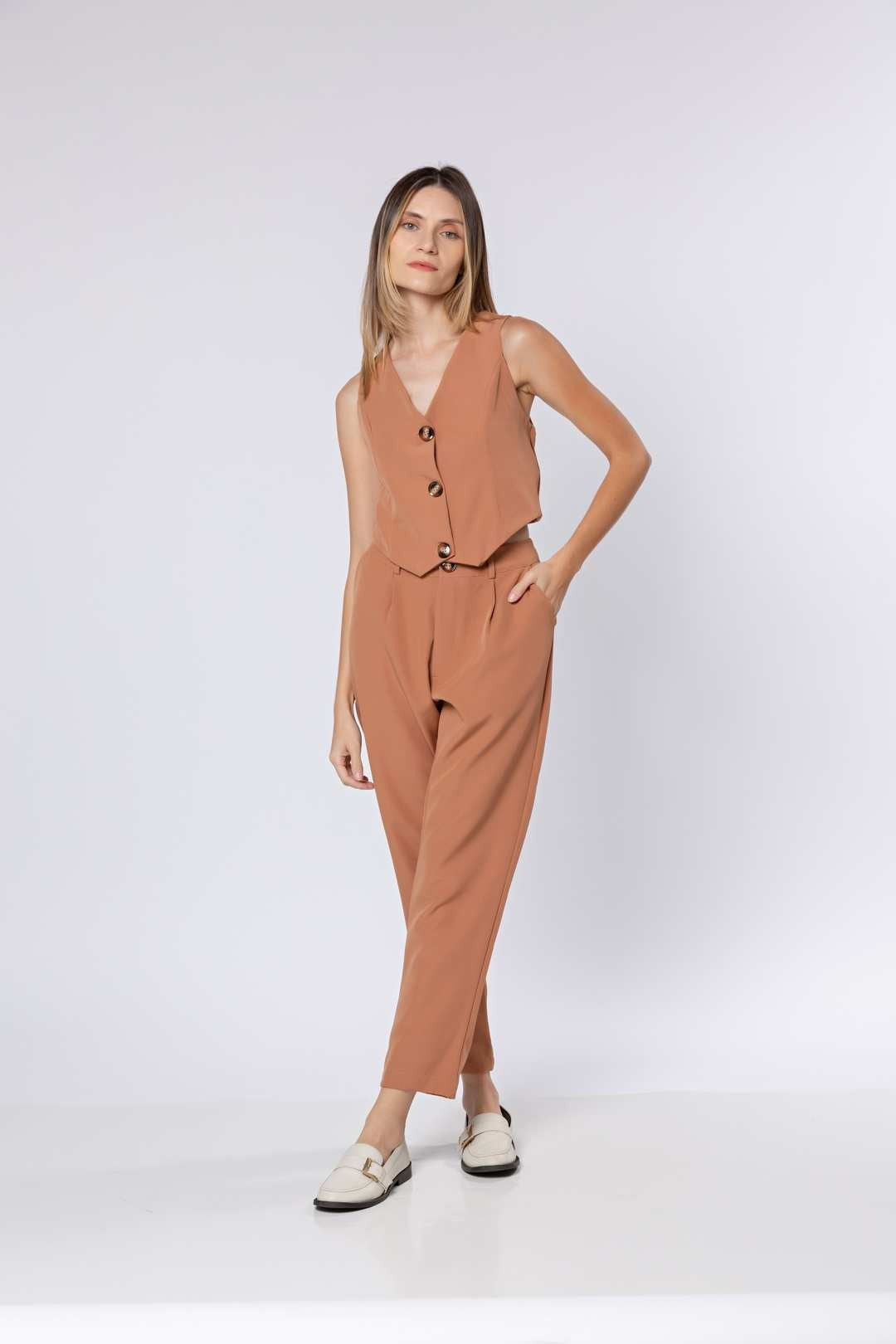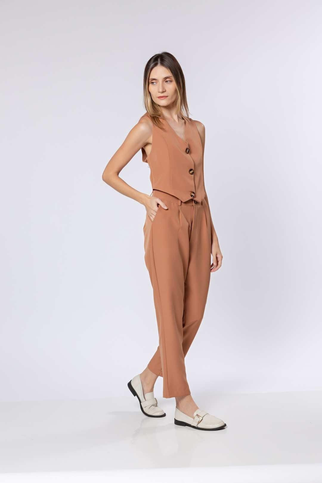 Versátil e chic, o Conjunto Colete + Calça oferece diversas opções de looks em duas peças de alfaiataria. Fabricado com tecido de alta qualidade (94% poliéster, 6% elastano), gramatura 200, proporcionando conforto e estilo em cada peça.