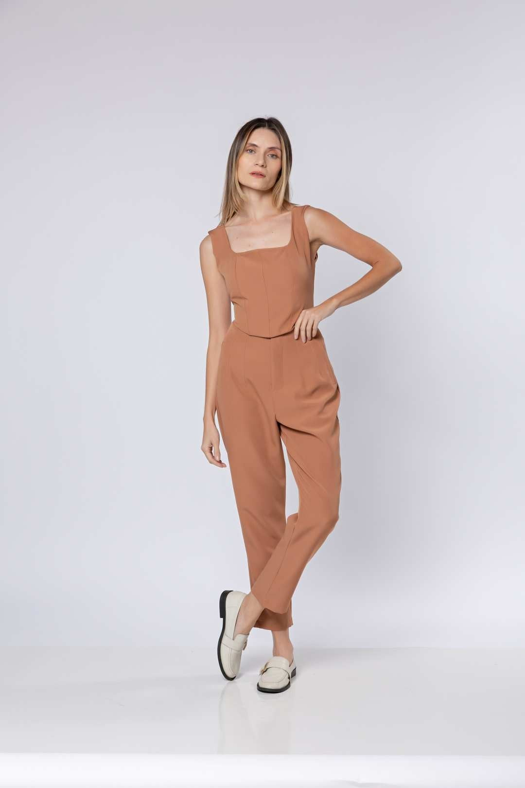 Conj Alfaiataria Nude - Cropped + Calça