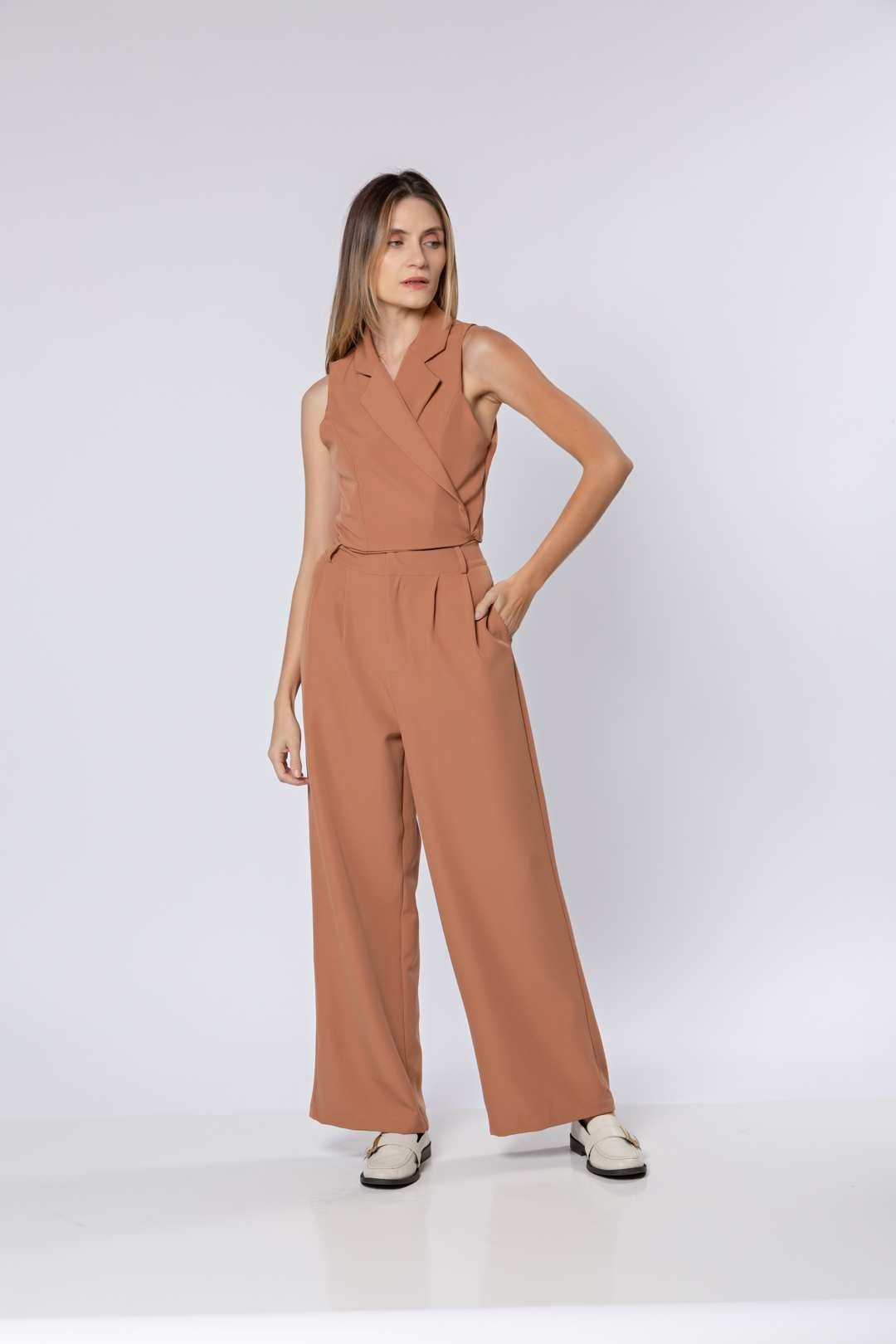 Conj Calça Pantalona + Blusa Bozzetti Nude