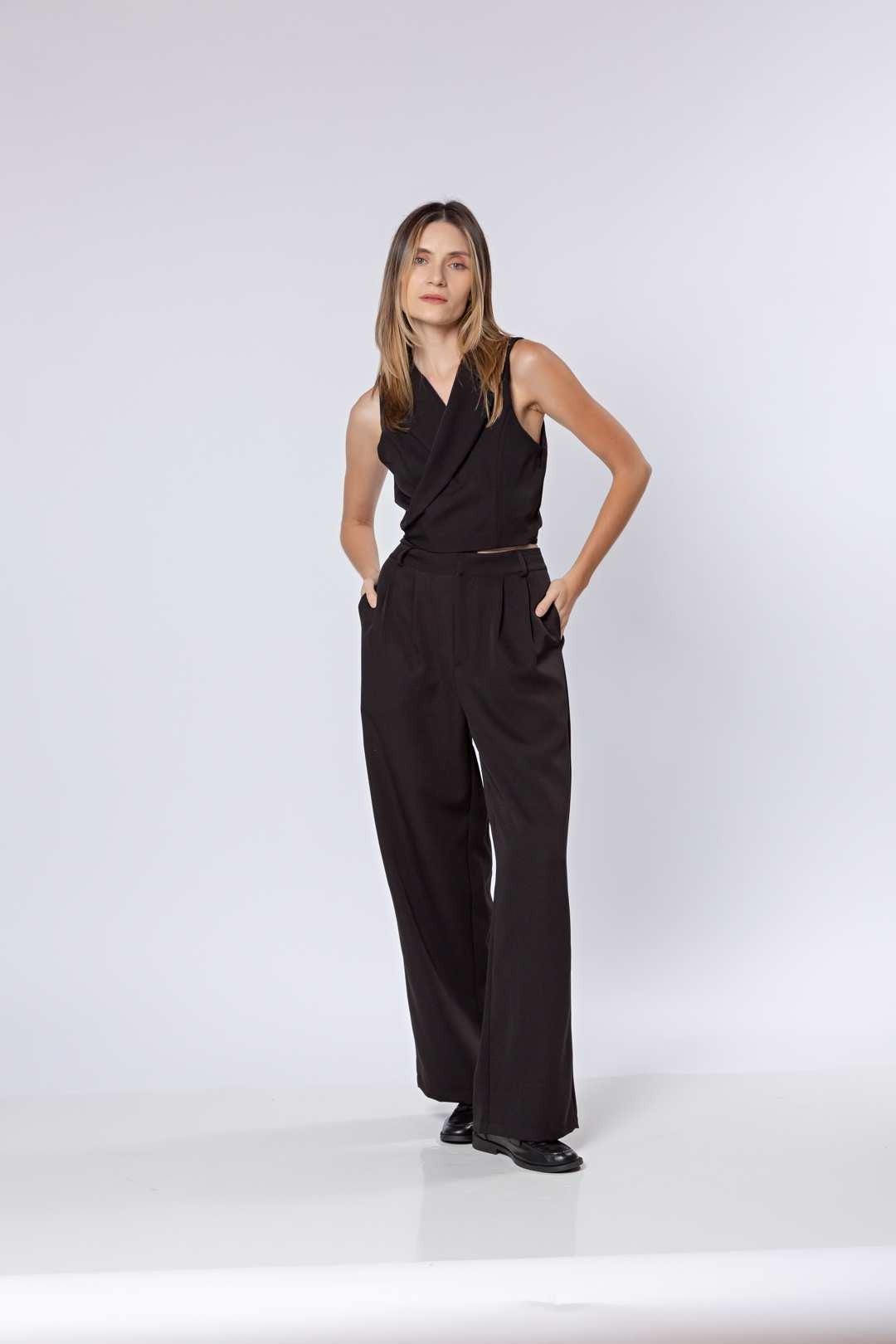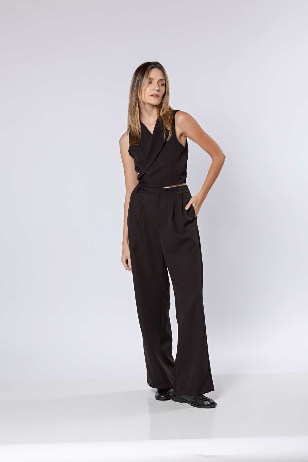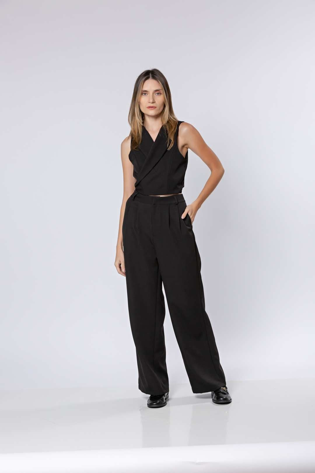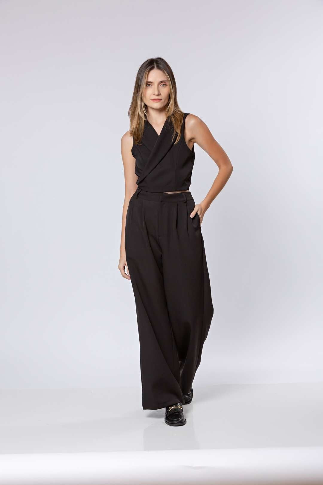Conj Calça Pantalona + Blusa Bozzetti Preta