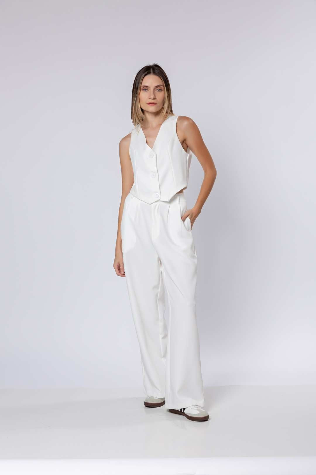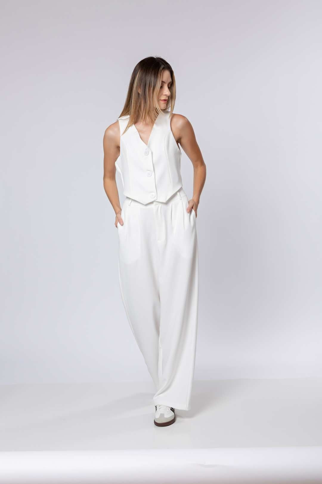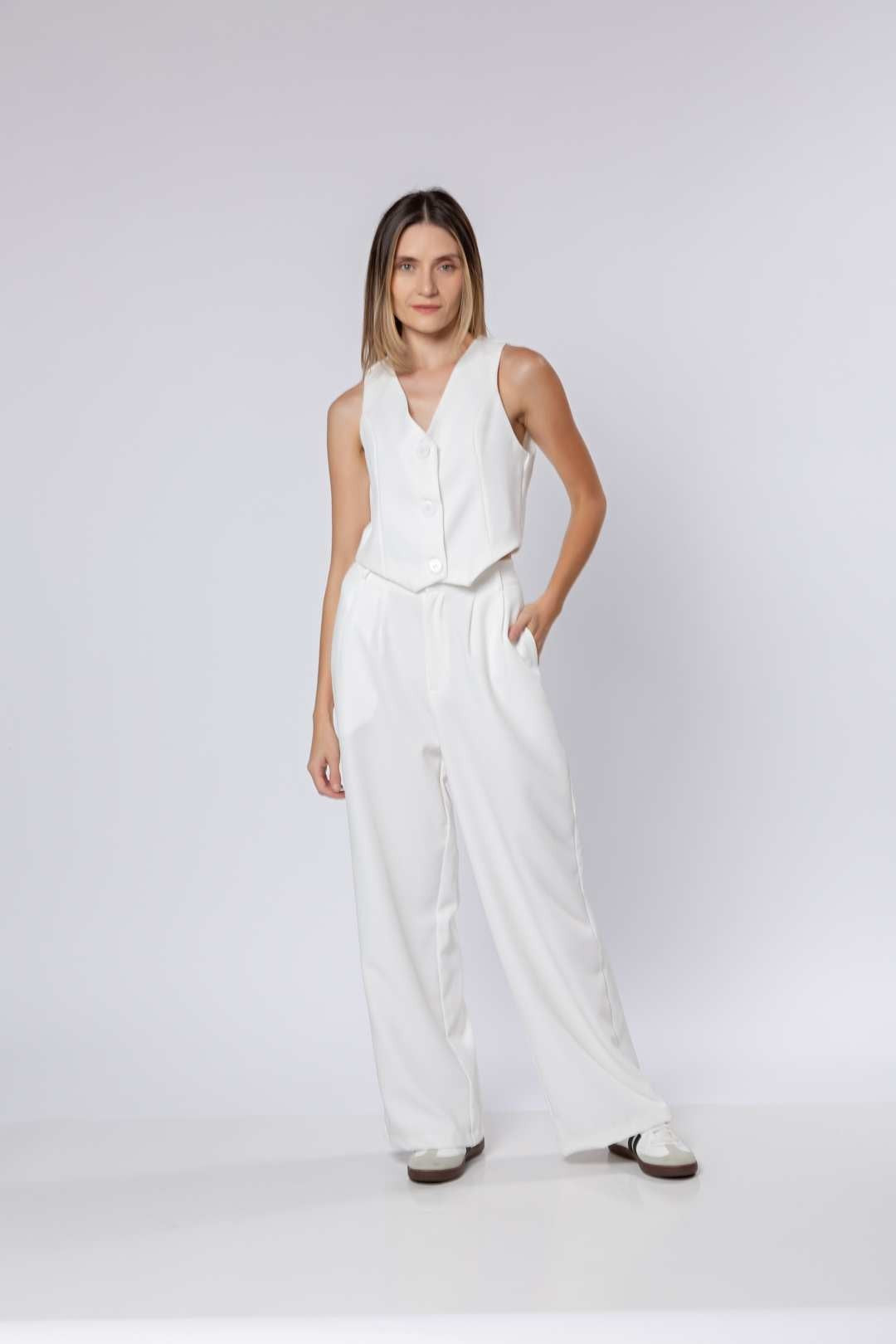 O Conjunto Calça Pantalona + Colete Off White é a escolha ideal para quem busca leveza e sofisticação em um único look. A calça pantalona garante movimento e fluidez, enquanto o colete traz estrutura e elegância, equilibrando o visual com perfeição. Em tom off white, a proposta é clean, moderna e extremamente versátil — perfeita para composições elegantes em eventos diurnos, ambientes profissionais ou momentos que pedem presença com delicadeza.