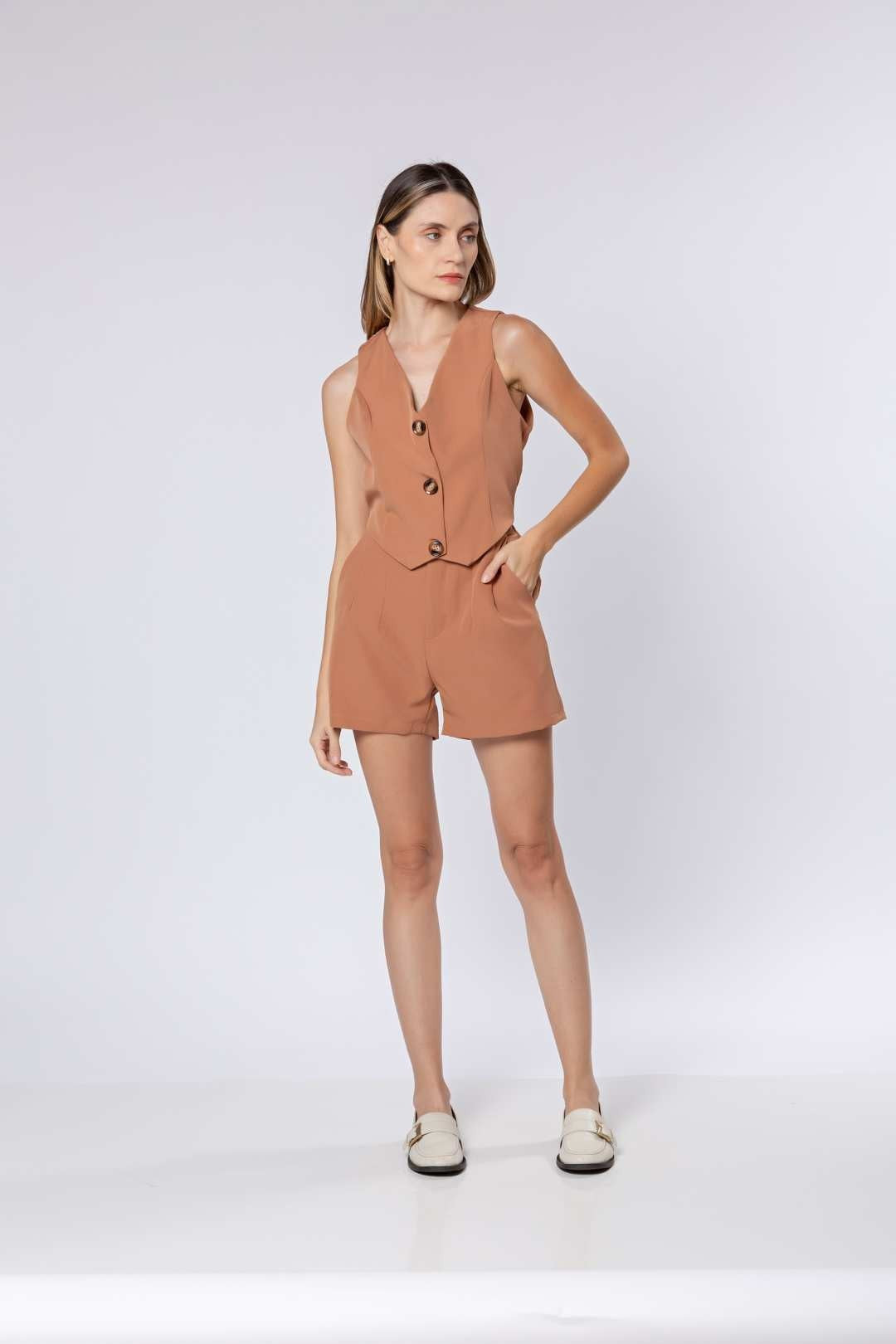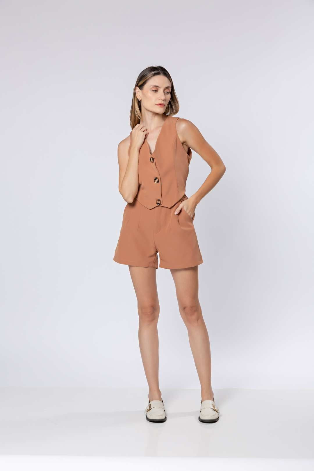 O Conjunto Colete + Shorts é uma opção moderna e elegante para mulheres que buscam praticidade sem abrir mão do estilo. Com fechamento em botões frontais e detalhes sofisticados, é fabricado com tecido de alta qualidade (94% poliéster, 6% elastano), gramatura 200, garantindo conforto e durabilidade.